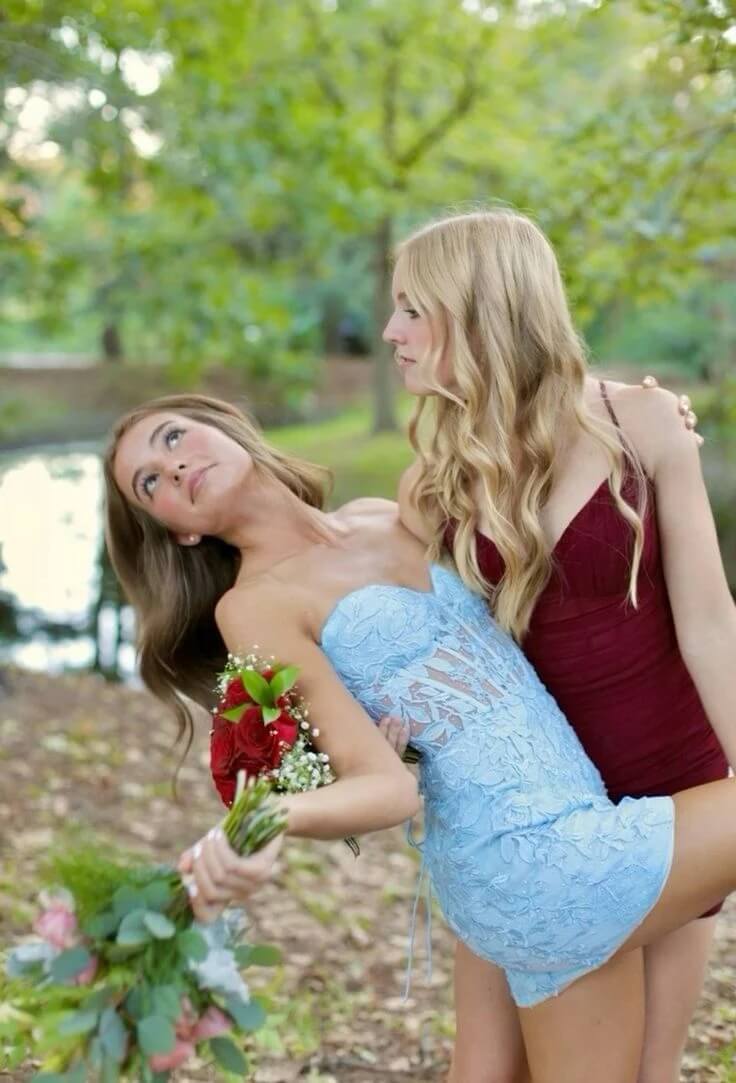 Este elegante minivestido de encaje es la elección perfecta para el baile de bienvenida. Confeccionado con un corte ajustado y un diseño sin tirantes, presenta exquisitos apliques para un look elegante y sofisticado. Asequible y a la moda, es una elección ideal para cualquier ocasión especial.